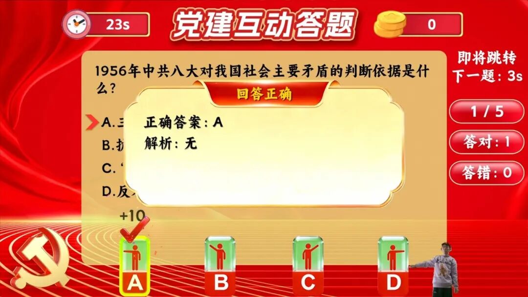 玩家通过体感手势隔空交互参与互动答题,自定义海量题库(Excel格式)。